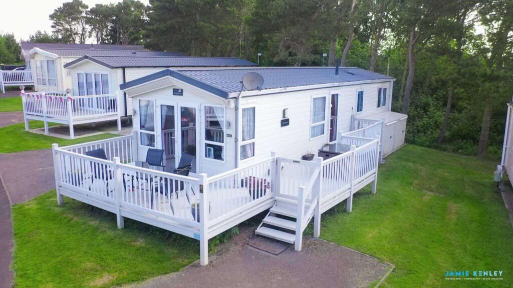 Stunning 2 bedroom caravan situated on the Pines area. Large south facing wraparound veranda, private parking bay, TVs all rooms & unlimited WiFi.