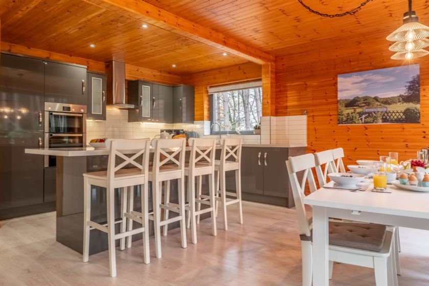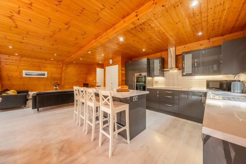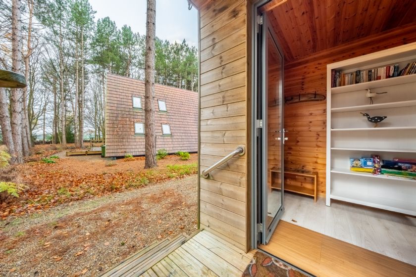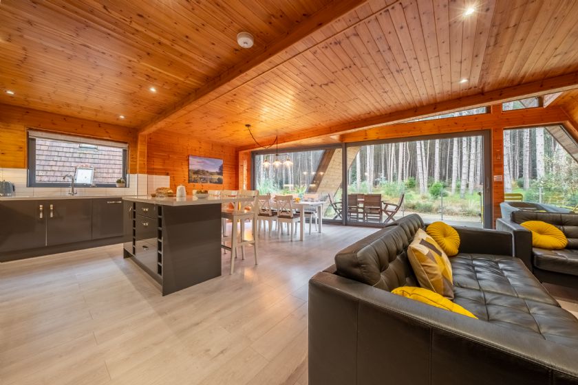 The detached lodge has three bedrooms (one of which is on the ground floor) and two bathrooms. The stunning full-height, open-plan living area is a fantastic place to relax and enjoy the peaceful location. Super insulated and double glazed, you will be kept lovely and cosy in the winter months and in the summer, slide open the large glass door from the living area, sit on the spacious decked balcony and soak in the sounds of the woodland. There is also a second decked balcony on the first floor, offering great woodland views from on high.